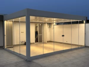 Pergola bioclimatica + pergola a telo fisso con vetrate – Napoli (NA)