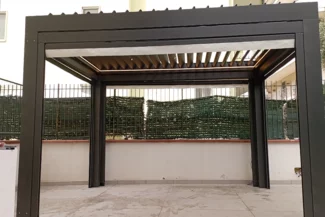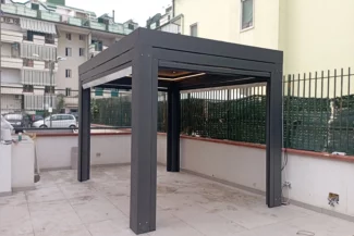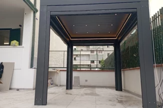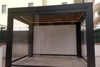 Tipologia: Pergola bioclimatica con tende verticali antivento e led integrati
