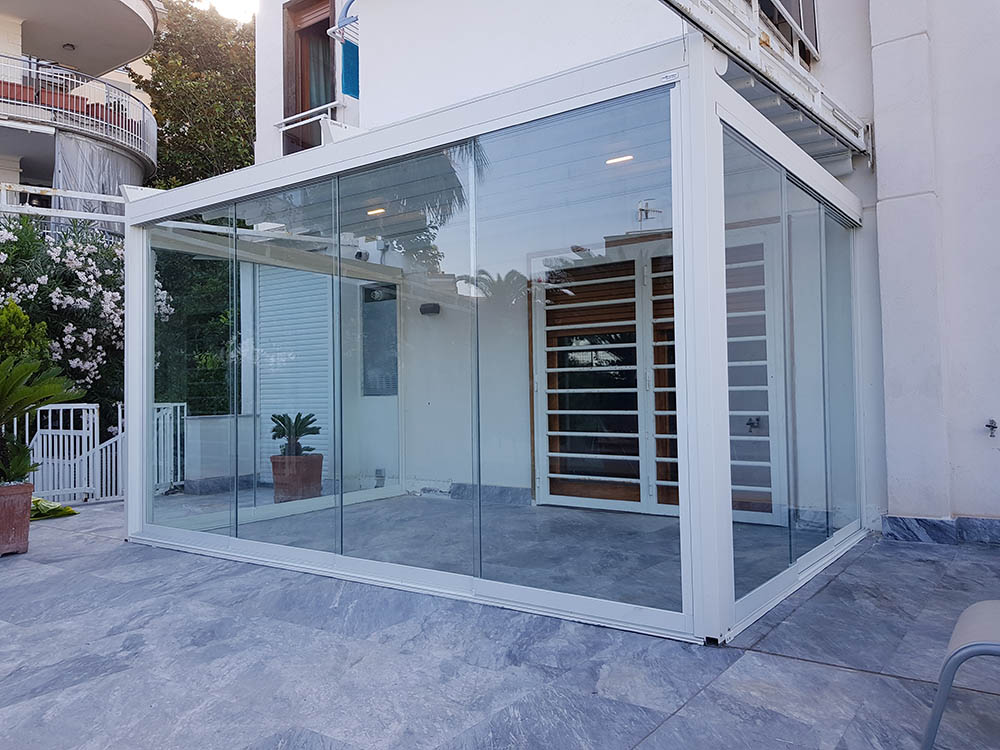 Pergotenda completa di chiusure verticali con vetrate – Napoli (NA)