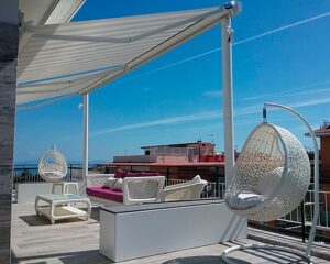 Tipologia: Telaio con tende da sole a bracci motorizzata + arredo