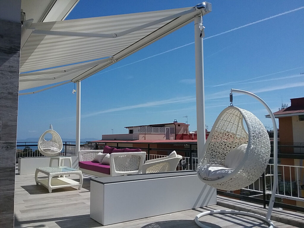 Tipologia: Telaio con tende da sole a bracci motorizzata + arredo