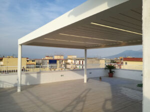 Pergola Bioclimatica completa di chiusure verticali e led – Napoli (NA)