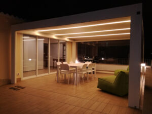 Pergola Bioclimatica completa di led e vetrate scorrevoli – Napoli (NA)