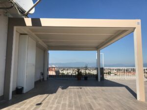 Pergola bioclimatica completa di chiusura laterale – Casoria (NA)