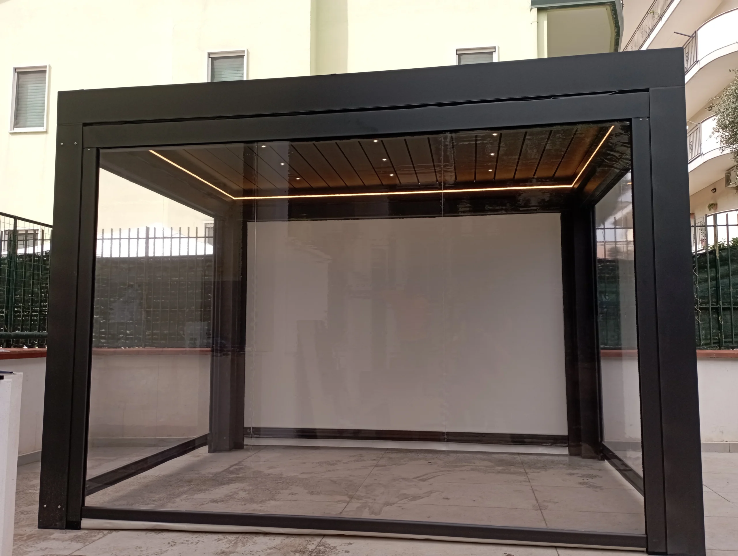 Tipologia: Pergola bioclimatica con tende verticali antivento e led integrati