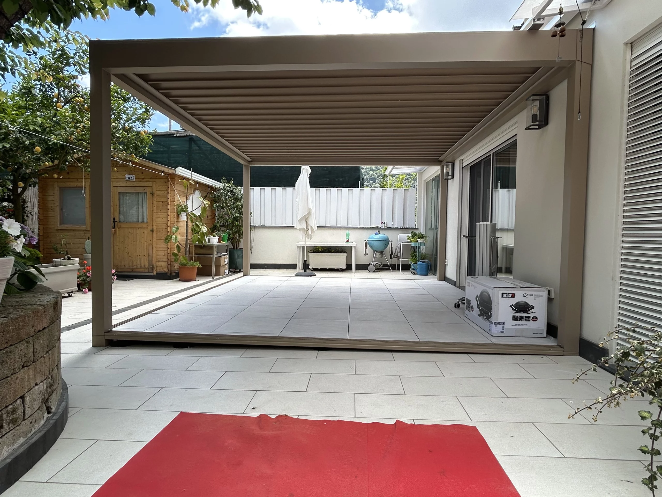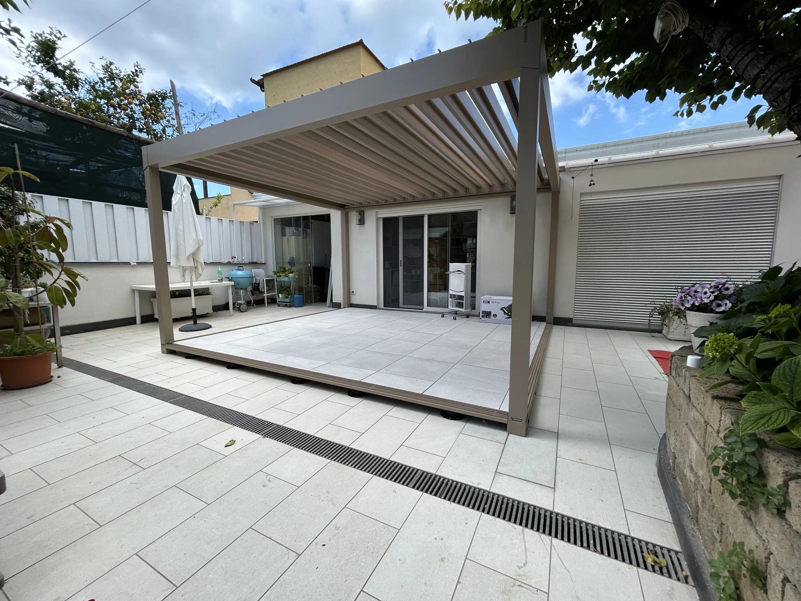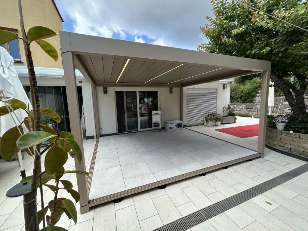 Modello:  Alba (Pergola bioclimatica) + Coperture De Vivo (Pavimentazione)