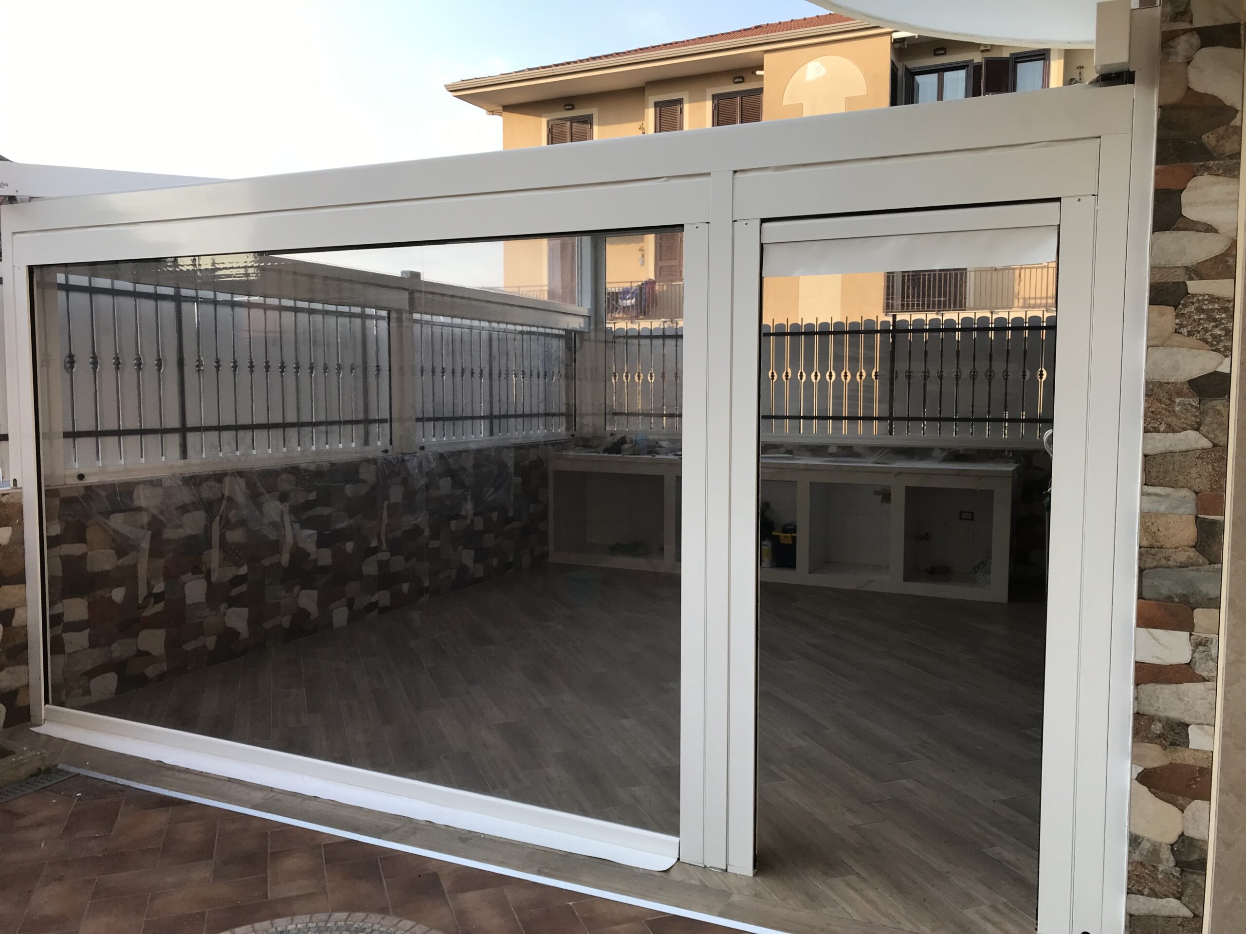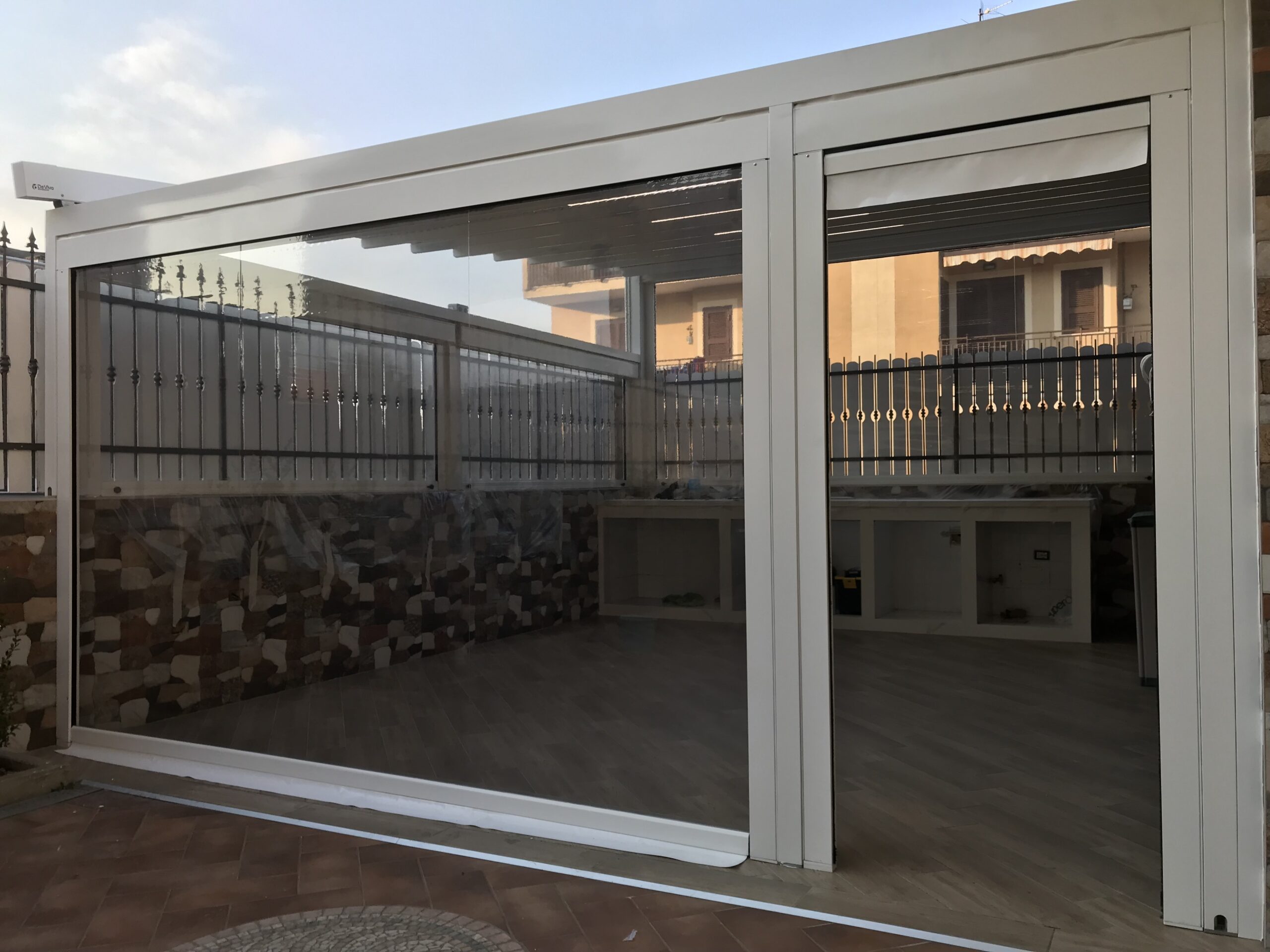 Modello: Kalè (pergotenda) + Clear (tenda antivento)