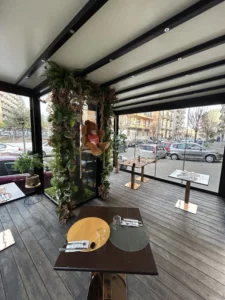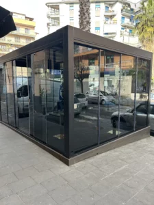 Tipologia: Copertura a telo fisso + copertura a telo mobile + Vetrate scorrevoli fumè