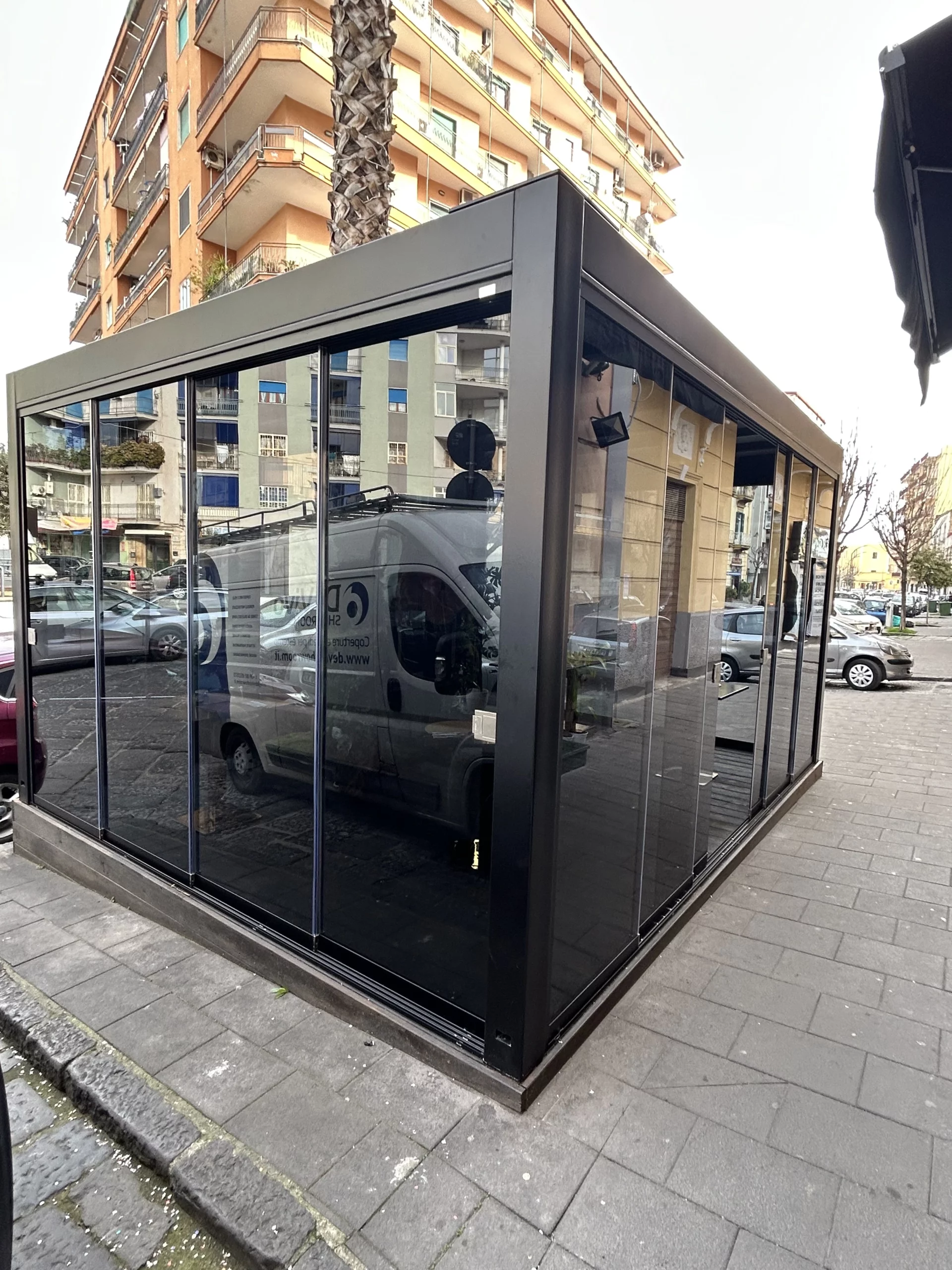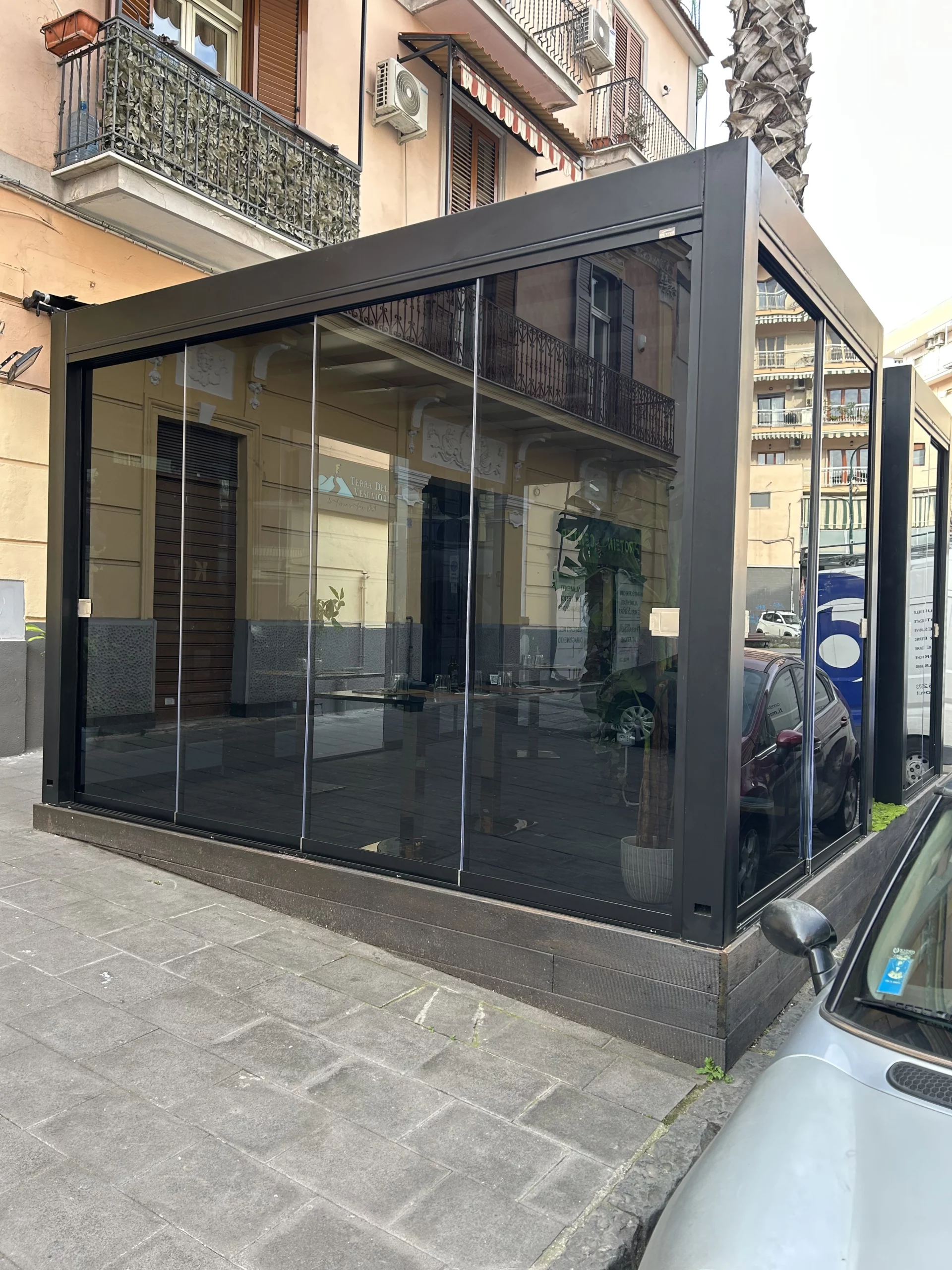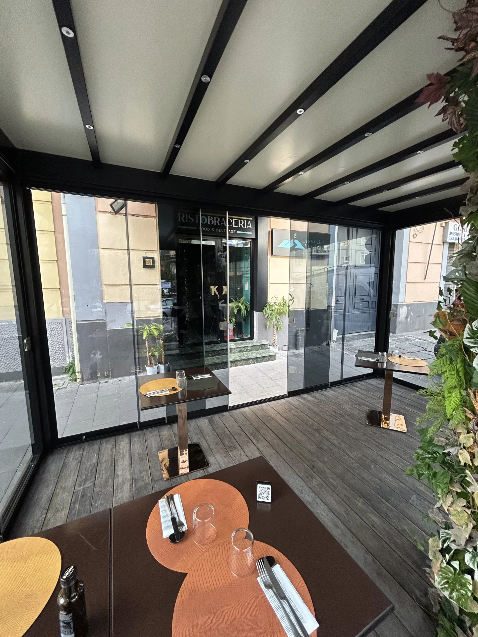 Tipologia: Copertura a telo fisso + copertura a telo mobile + Vetrate scorrevoli fumè