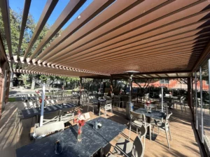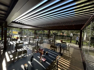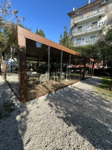 Tipologia: Copertura a telo fisso accoppiata + pergola Bioclimatica accoppiata + Vetrate scorrevoli