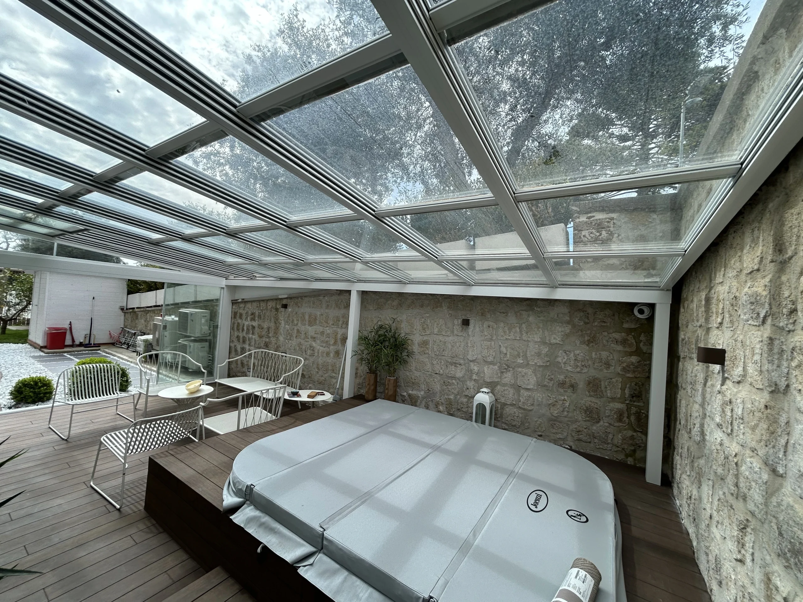 Tipologia: Copertura apribile in vetro + vetrate scorrevoli