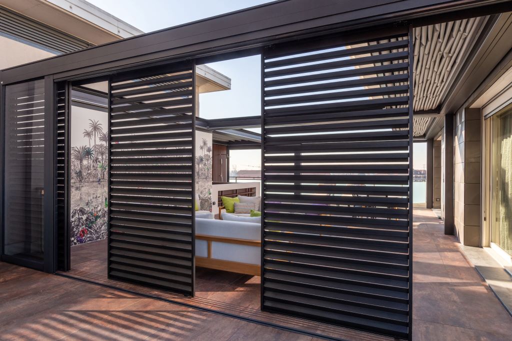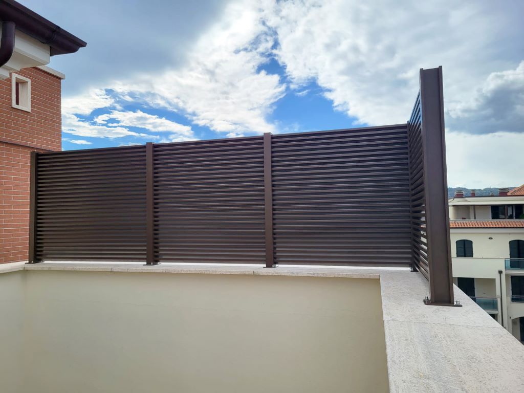 I Frangisole sono pannelli composti da lamelle fisse o mobili, che schermano dai raggi solari e permettono quindi di modulare la luce e regolare il calore all’interno degli ambienti. Vengono utilizzati anche per ripararsi da sguardi indiscreti e come recinzione.