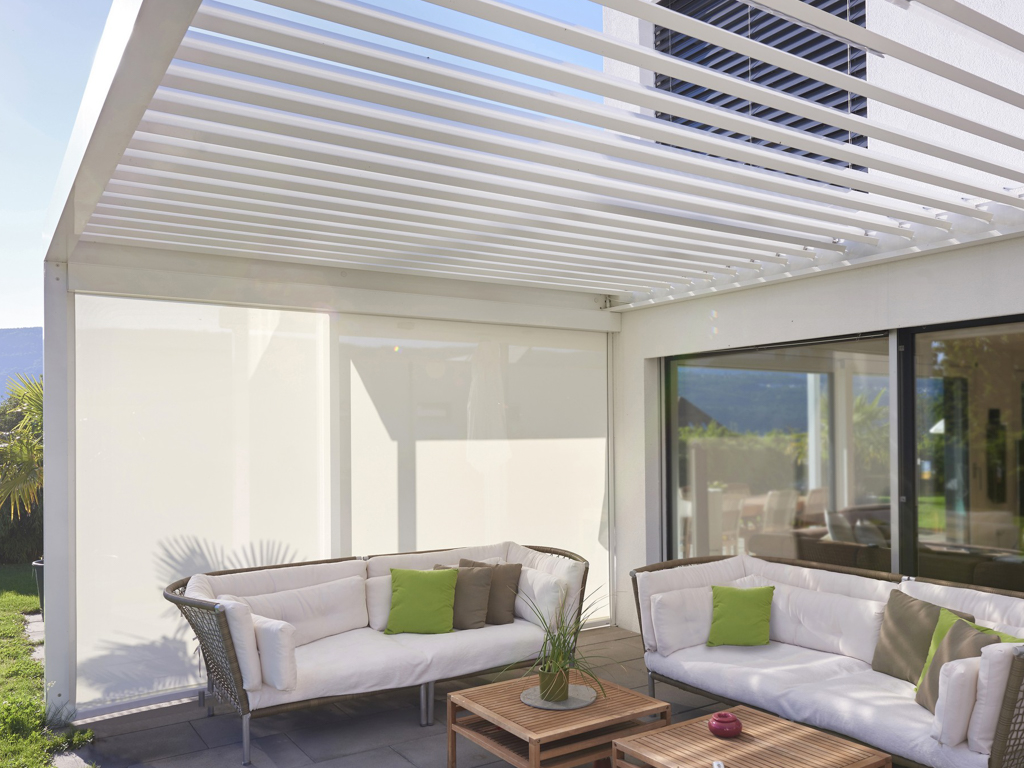 Garantisce il massimo comfort in termini di temperatura, luce e ventilazione grazie ad una modulazione naturale di vento e sole. Infatti basta aprire le lamelle per permettere all’aria calda di uscire o regolarle in base alla posizione del sole per avere uno spazio interno più o meno soleggiato.