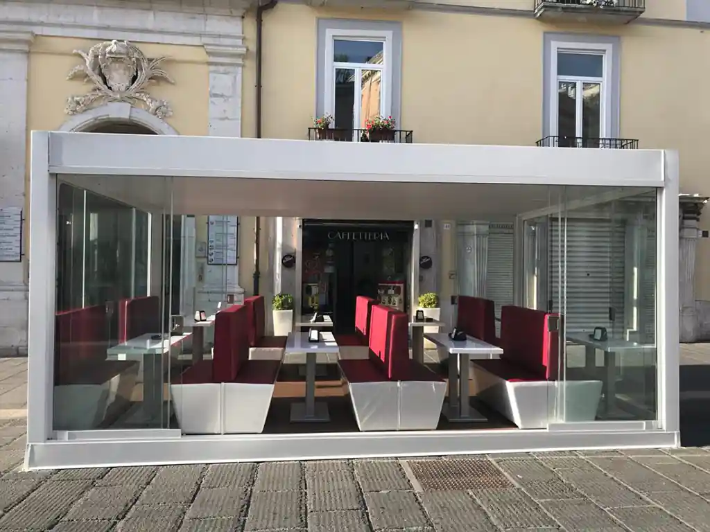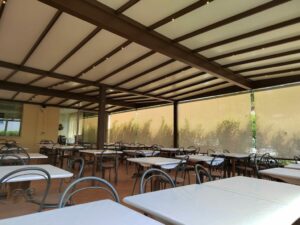 Con le Pergole a tetto fisso è possibile coprire spazi molto ampi senza ingombri centrali. Questo è un beneficio per tutti, ma soprattutto per il mondo Horeca, dove i piantoni sono veri e propri ostacoli. - COSTA MENO RISPETTO AD UNA COPERTURA IN ALLUMINIO.