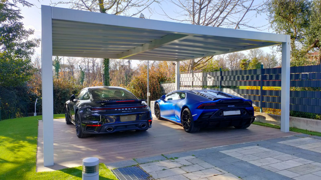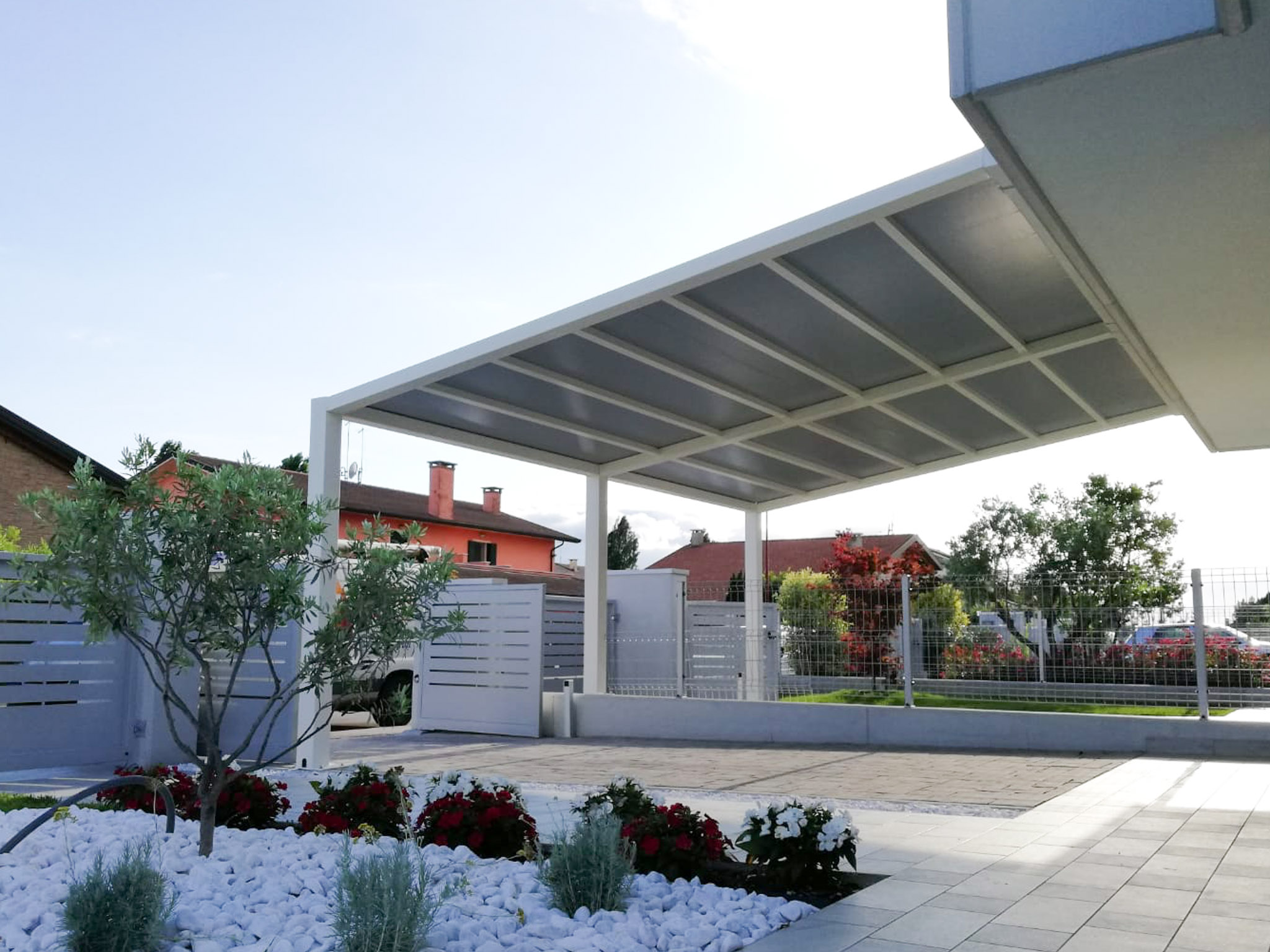 Più nello specifico, è una copertura che ha una struttura portante in acciaio e un tetto inclinato o in piano, realizzato in vari materiali.