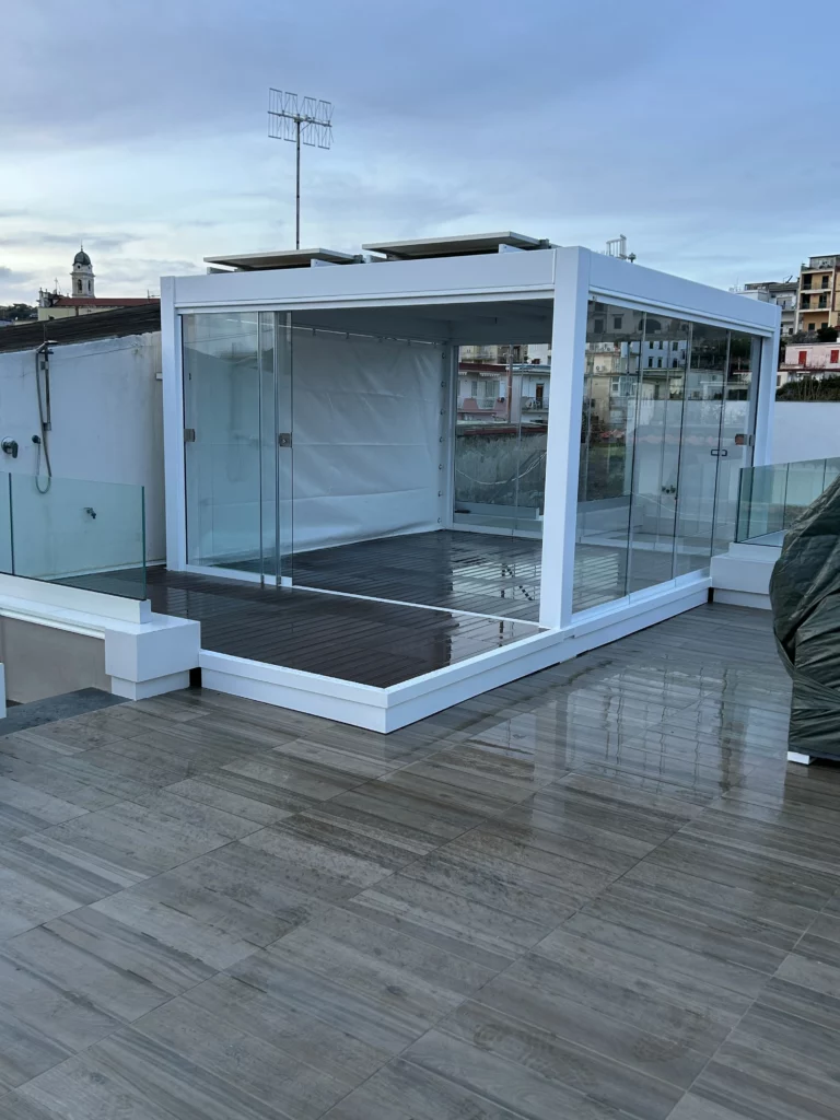 Prodotto installato: Pergola motorizzata Kalè con Vetrate Coperture De Vivo