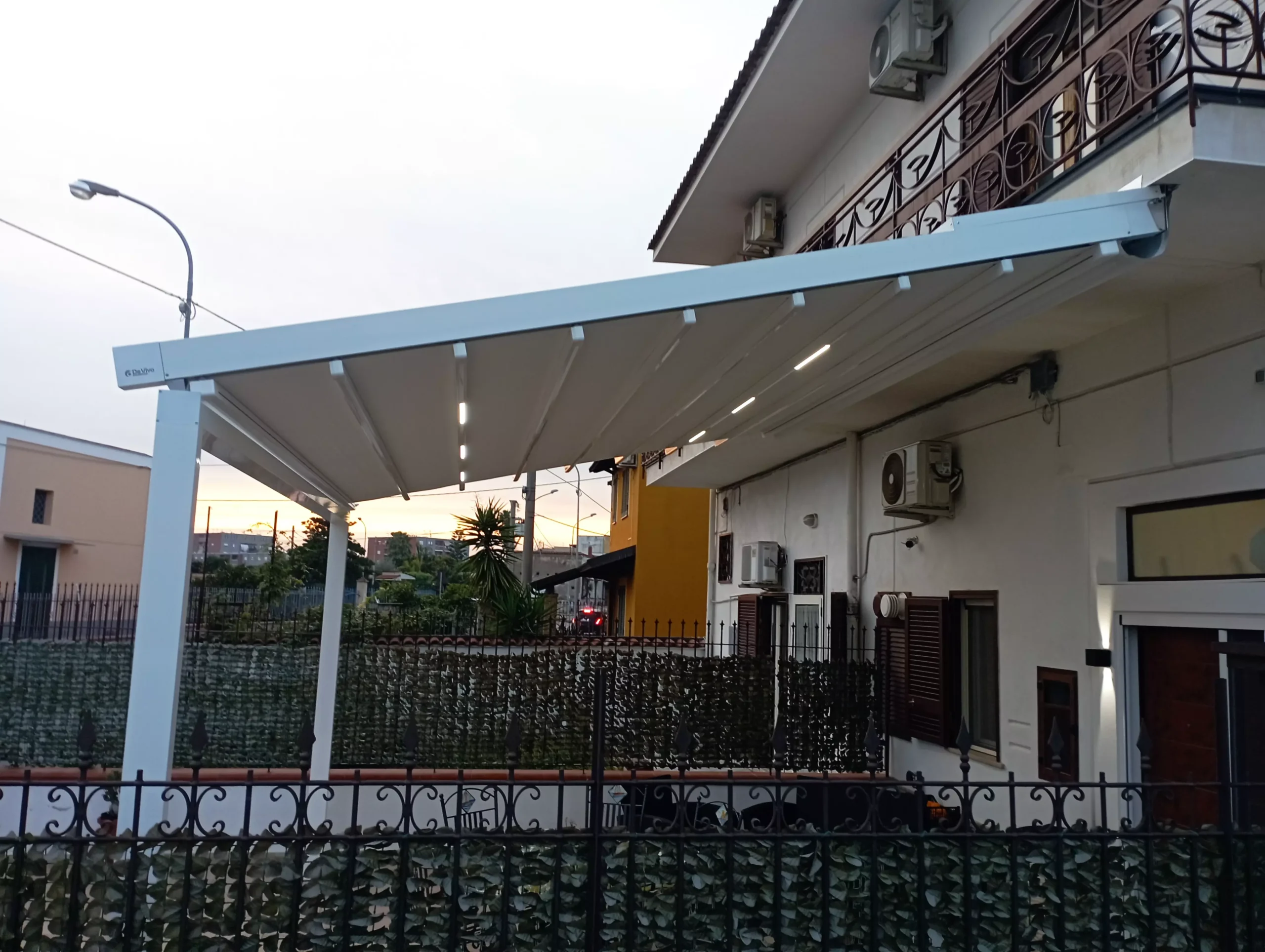 Durante la fase di consulenza Carmen mi ha consigliato una Pergotenda Kalè con led integrati.